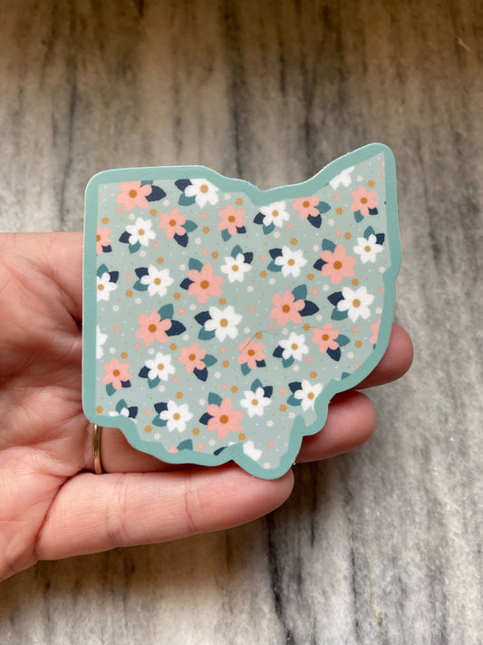 Blue Ohio Floral Waterproof Vinyl Sticker