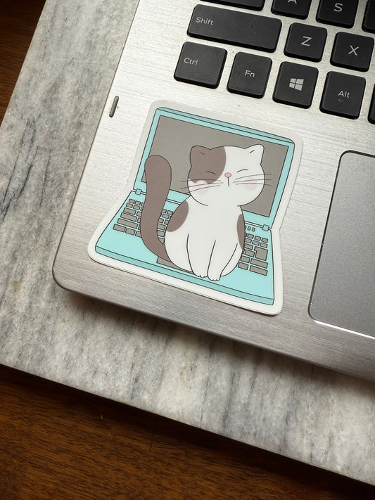 Laptop Cat Waterproof Vinyl Sticker